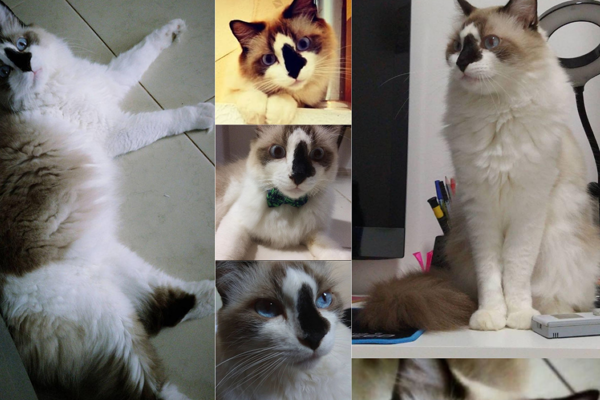 O Snow é peludo, animal castrado, tem 10 anos. Muito assustado naturalmente, branco com detalhes marrons nas costas, orelhas escuras e uma mancha preta no nariz